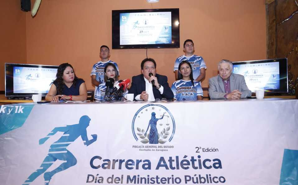Torreón, Coahuila. – La segunda edición de la carrera institucional del Día del Ministerio Público, tiene por objeto fortalecer los valores éticos entre las familias de los representantes sociales y que tengan un acercamiento con la sociedad, dijo el Fiscal General del Estado, Gerardo Márquez Guevara, en la presentación de la justa deportiva a celebrarse en esta ciudad el domingo 20 de octubre.
