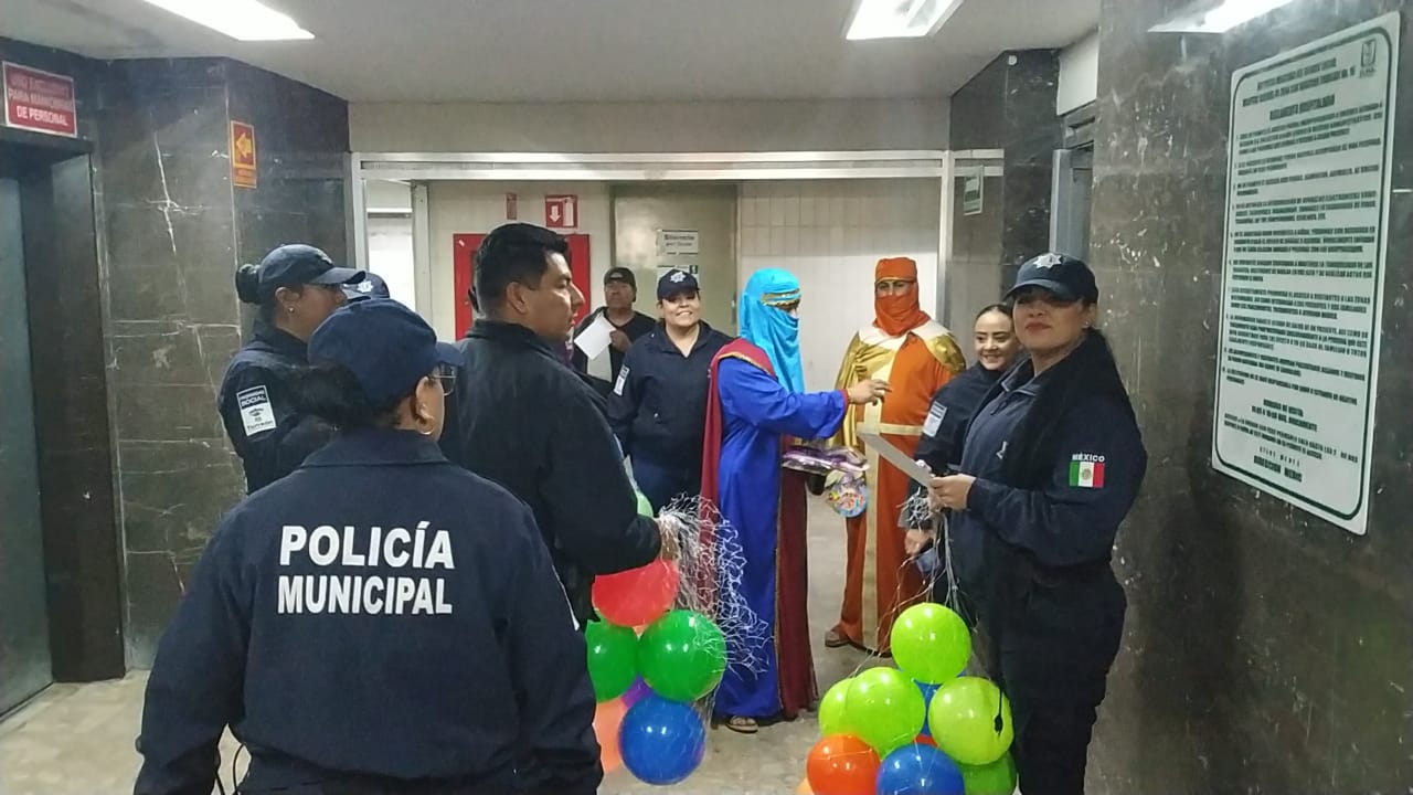 En el turno diurno las patrullas saliendo de la corporación para iniciar sus recorridos cotidianos por la ciudad, fueron cargadas con regalos para luego visitar el Hospital General, la Clínica 16 del IMSS, la Casa Feliz, la Clínica 18 del IMSS, Hospital Infantil, Albergue La Fe y Albergue Espíritu que Danza, entre otros.