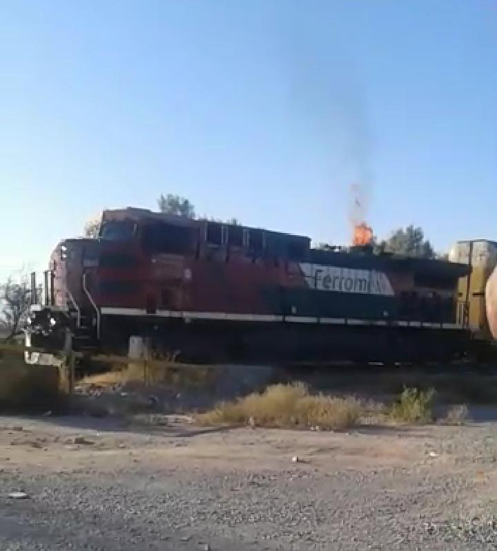 Fue alrededor de las 15:55 horas cuando los elementos de la patrulla número 028 de Tránsito y Vialidad se percataron que el tren que proviene de la ciudad de Chihuahua viene aventando lumbre de la máquina principal.