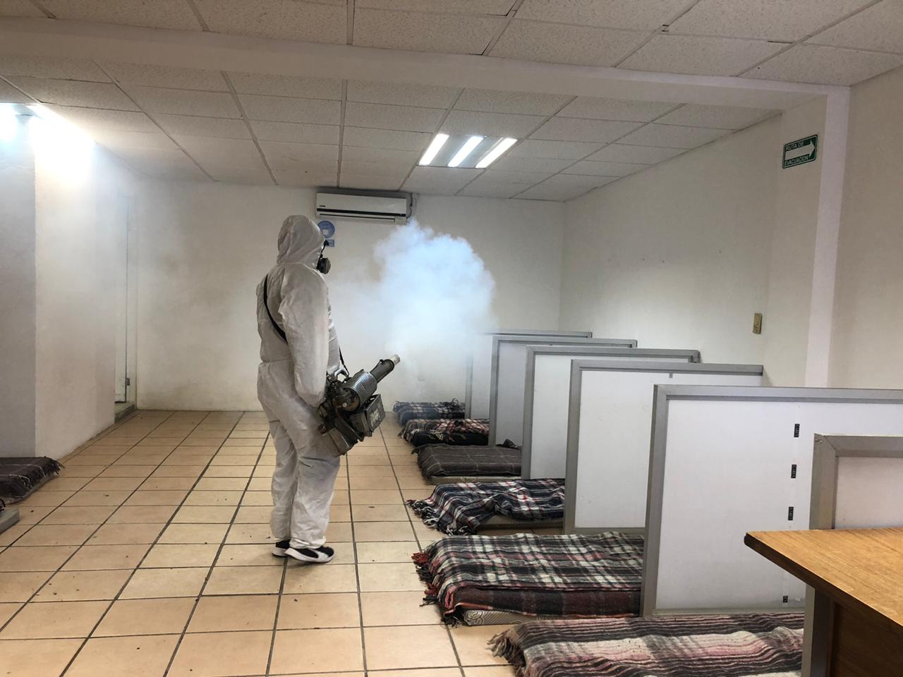 Frente a los pronósticos de bajas temperaturas para esta semana, el albergue recibió esta mañana la sanitización por parte de Salud Municipal, cabe resaltar que en el lugar se cuenta con un filtro sanitario, toma de temperatura, gel antibacterial y químicos sanitizantes.