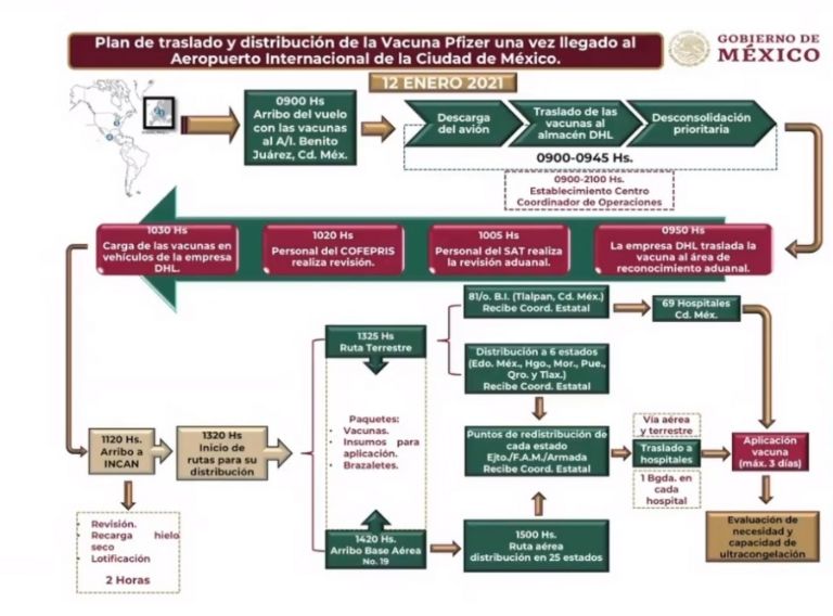 Al presentar el “Plan de traslado y distribución” de las más de 400 mil Pfizer que llegan hoy, explicó que también creó la “Brigada Correcaminos” para vacunar al personal médico en todo el país.