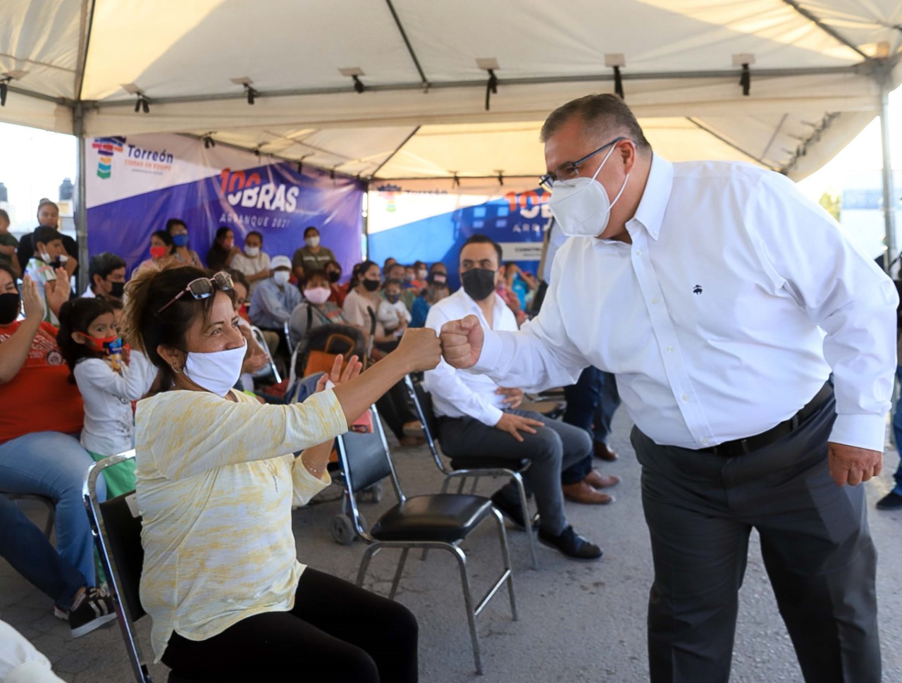 Acompañaron al alcalde de Torreón en este evento, el secretario del Ayuntamiento, Héctor Rivera López, el director de Obras Públicas, Tomás Galván Camacho, la síndica de mayoría, Sandra Guadalupe Mijares Acuña, además de regidoras y regidores, directores municipales y vecinos del sector.