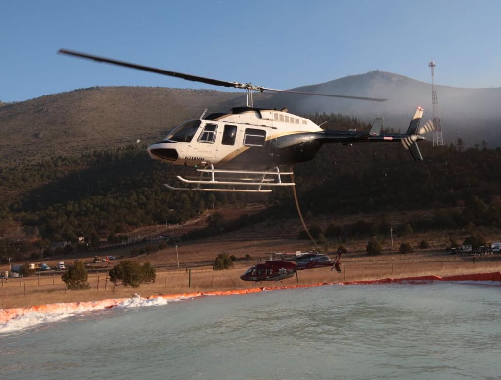 Fueron apoyados desde el aire por cinco helicópteros: tres del Gobierno del Estado y dos de la Guardia Nacional, realizando descargas de agua y transportando brigadistas a las zonas de más difícil acceso.