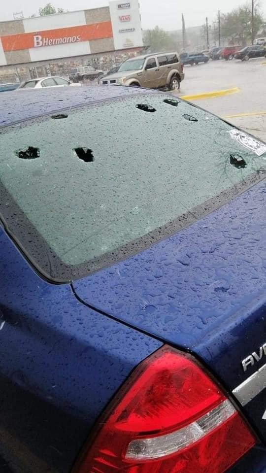 También daños parciales en el plafón de la tienda “Valle del sol” y un número aún no determinado de vehículos con daños en parabrisas o carrocería.