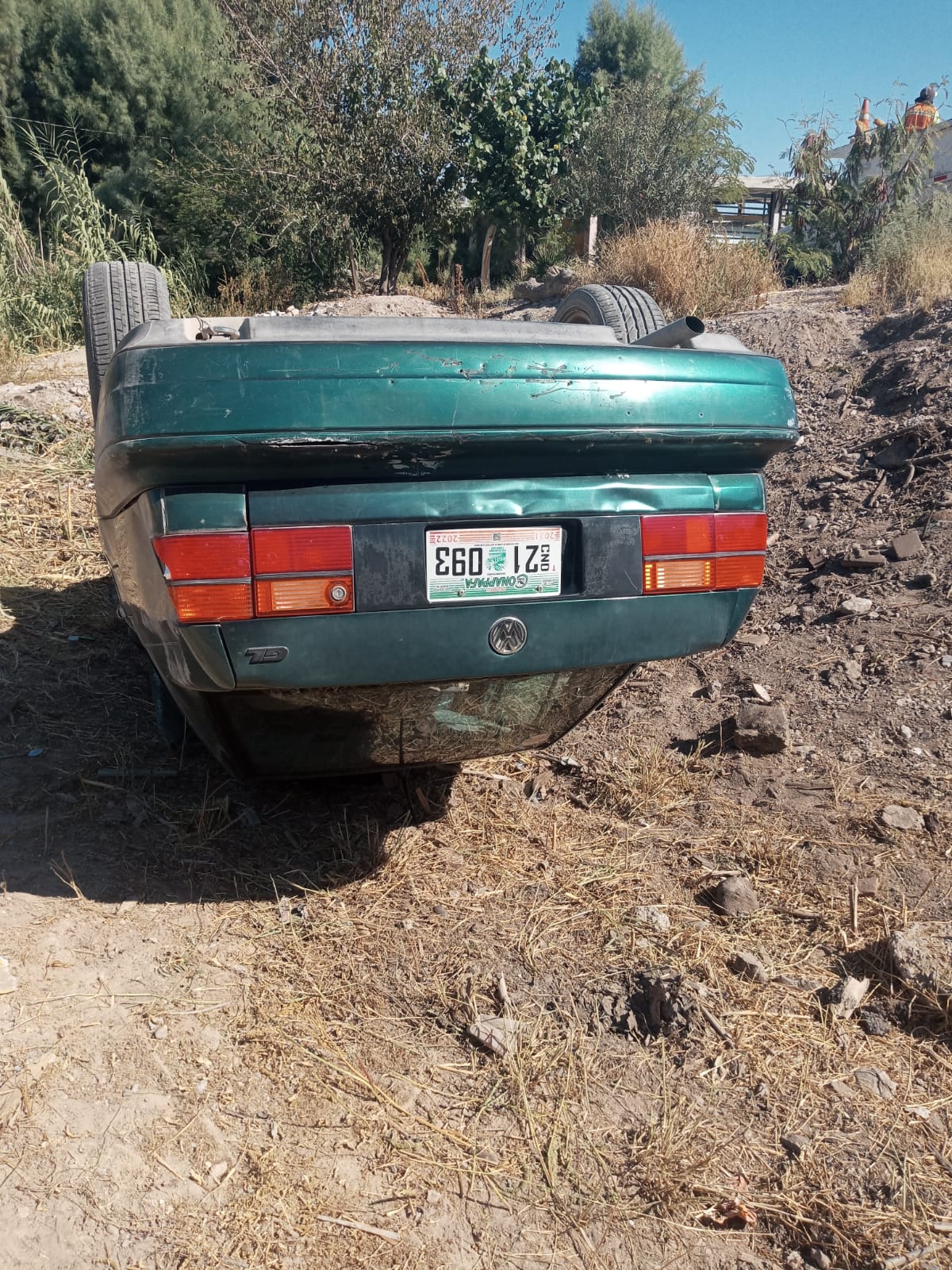 Ambulantes de la Cruz Roja, elementos policíacos y peritos de tránsito, acudieron por el llamado al 911 en el que se dijo que un auto se volcó en el canal del desagüe a un lado del Oxxo, en la tienda hacia Gregorio García.