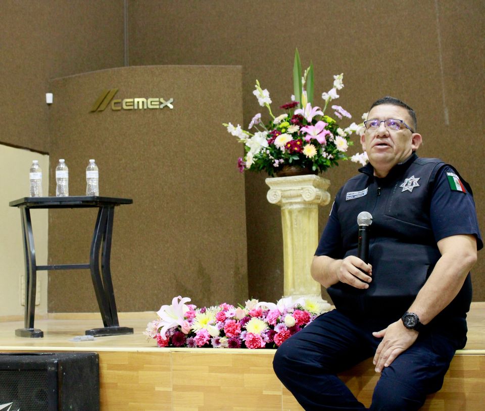 Torreón, Coahuila. –  El director de Seguridad Pública Municipal, Comisario César Antonio Perales, impartió una conferencia a mujeres integrantes del Centro Comunitario de CEMEX México, sobre el programa de medidas de prevención para disminuir los hechos de violencia familiar.