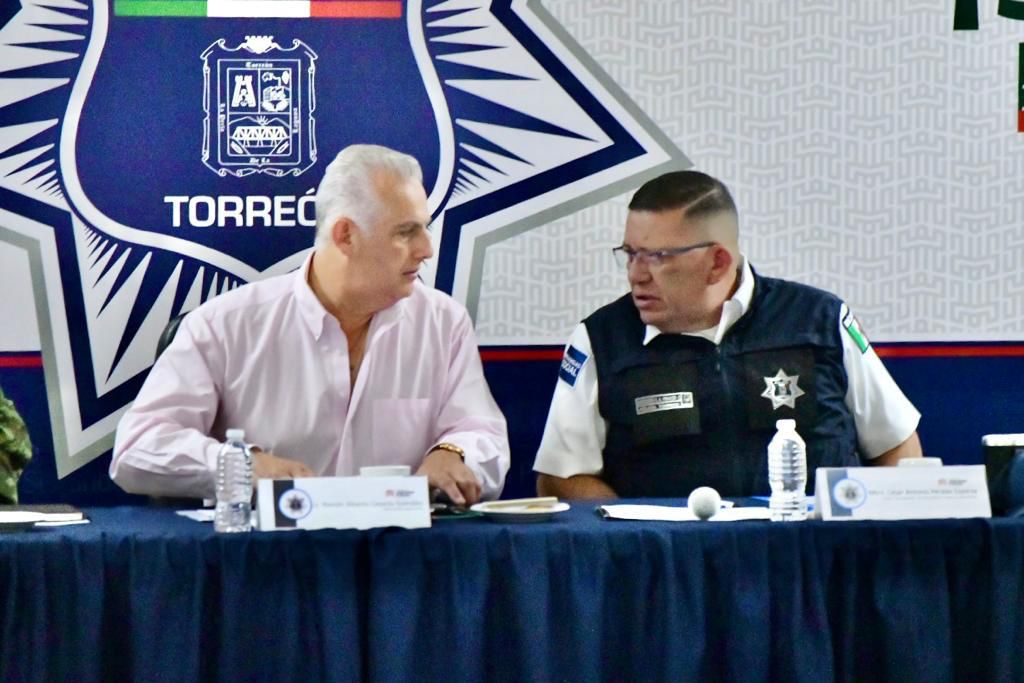 Torreón, Coahuila. – Se llevó a cabo la reunión semanal de seguridad en la cual participó el alcalde Román Alberto Cepeda González, así como los representantes de las corporaciones de seguridad de los tres órdenes de gobierno.