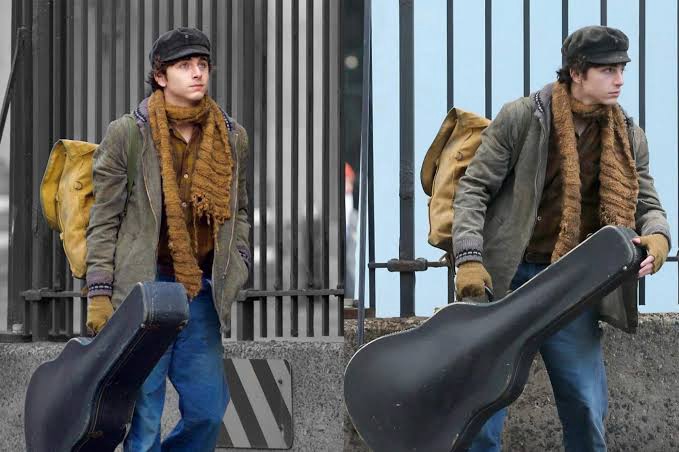 Las recientes filtraciones de imágenes muestran a Chalamet transformado en una versión bohemia y cautivadora de Bob Dylan. Ataviado con una larga chaqueta, bufanda, guantes y una emblemática boina, el actor encarna magistralmente la esencia del icónico músico.