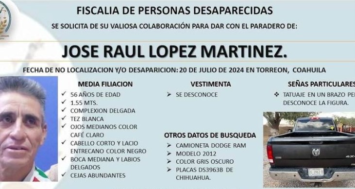 Se trata de José Raúl López Martínez, quien fue visto por última vez el pasado sábado 20 de julio.