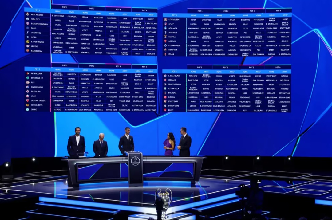 En la Champions League, cada uno de los 36 equipos tendrá asegurados ocho partidos en el que se enfrentarán a dos rivales de cada uno de los cuatro bombos de clasificación, fase que se disputará hasta enero.