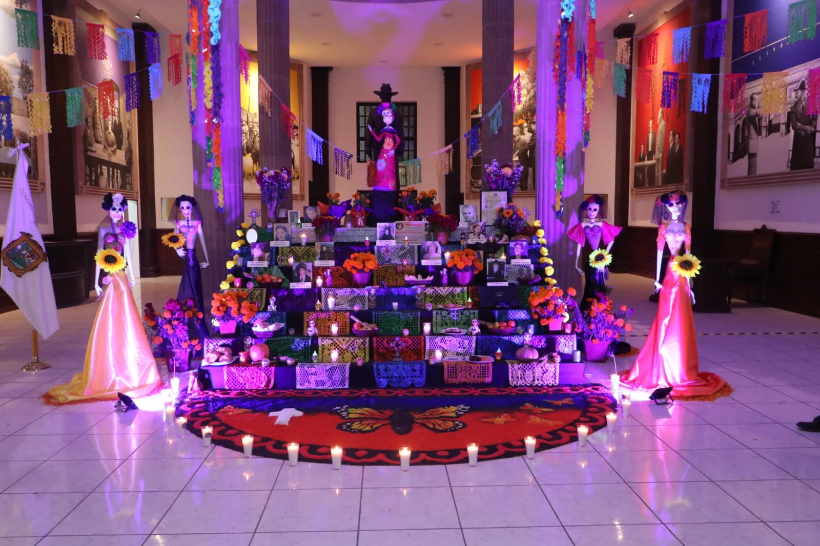 En el altar de muertos instalado en el vestíbulo principal del Palacio del Congreso, se llevó a cabo esta presentación con la presencia de la diputada Luz Elena Morales Núñez, presidenta de la Junta de Gobierno quien dio un mensaje de bienvenida; la diputada Magaly Hernández Aguirre, coordinadora de la Comisión de Educación, Cultura, Desarrollo Humano, Familias y Actividades Cívicas quien estuvo a cargo de los trabajos para la elaboración de la ofrenda; la diputada María del Mar Treviño Garza; el diputado Antonio Attolini Murra; familiares y amigos de las homenajeadas, entre otros distinguidos invitados.