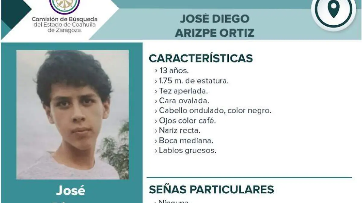 La Comisión de Búsqueda del Estado de Coahuila ya emitió su ficha con fotografía y datos generales, pero no se proporcionaron señas particulares del menor.