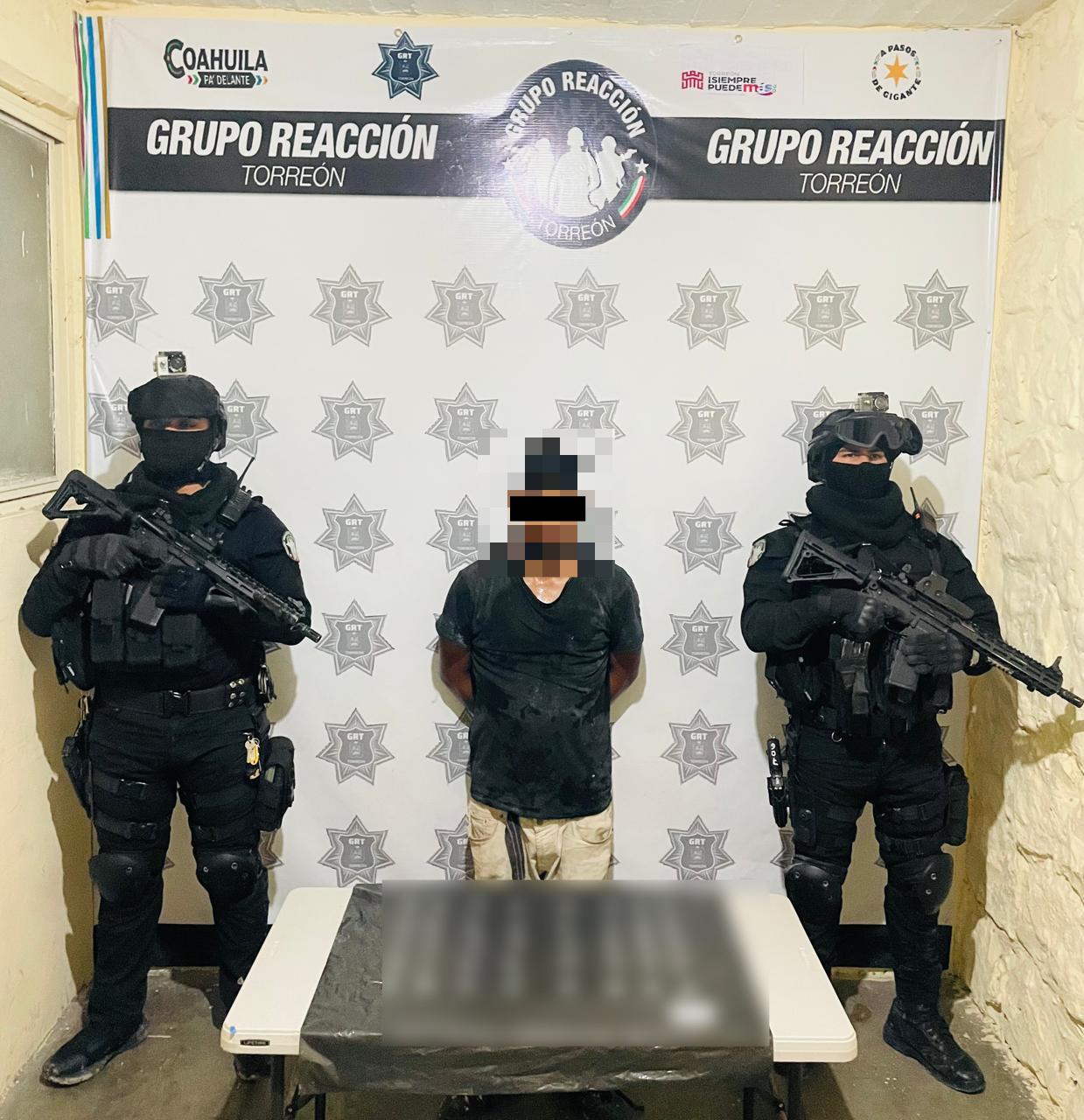 Torreón, Coahuila. – A las 22:23 horas de este viernes, elementos del Grupo Reacción Torreón realizaron la detención de un individuo por posesión de narcóticos en la esquina sur-poniente de la Carretera Torreón-Matamoros y Periférico Esterito Mieleras, en el sector Villas del Sol.