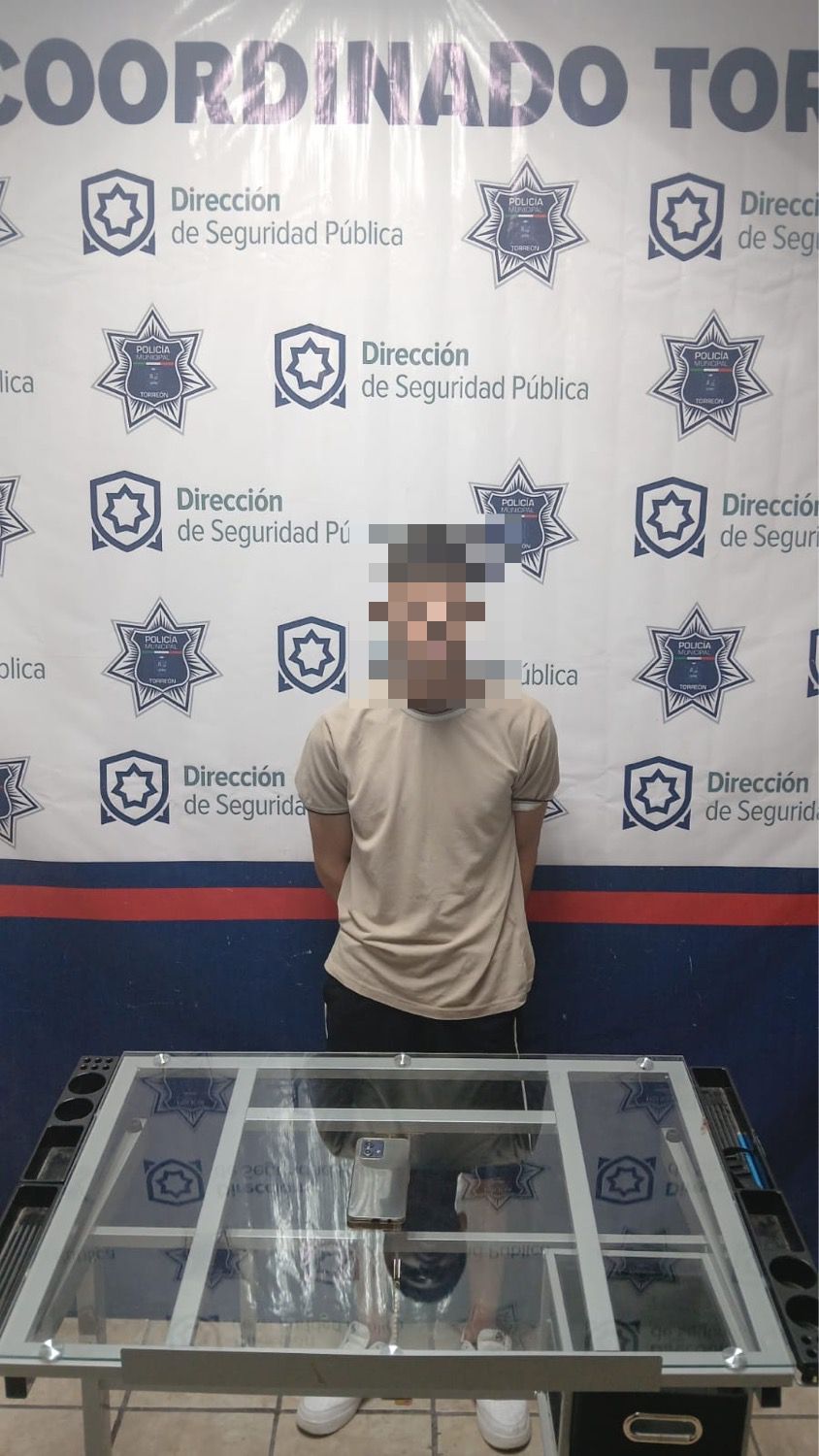 Torreón, Coahuila. – La madrugada de este domingo, elementos de la Policía Municipal de Torreón detuvieron a un sujeto identificado como Alan Arturo “N” de 22 años de edad, por su presunta participación en un robo a persona cometido sobre la calle Blanco y avenida Matamoros, en la colonia centro.