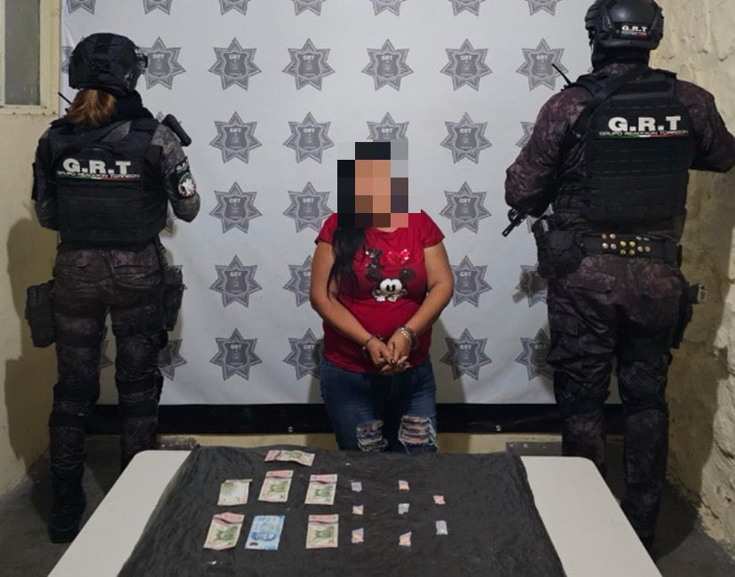 Torreón, Coahuila.. – Durante las primeras horas de este domingo, elementos del Grupo de Reacción Torreón realizaron la detención de una mujer identificada como Cristina Ofelia “N”, de 53 años, en posesión de presunta droga, en calles de la colonia San Joaquín.