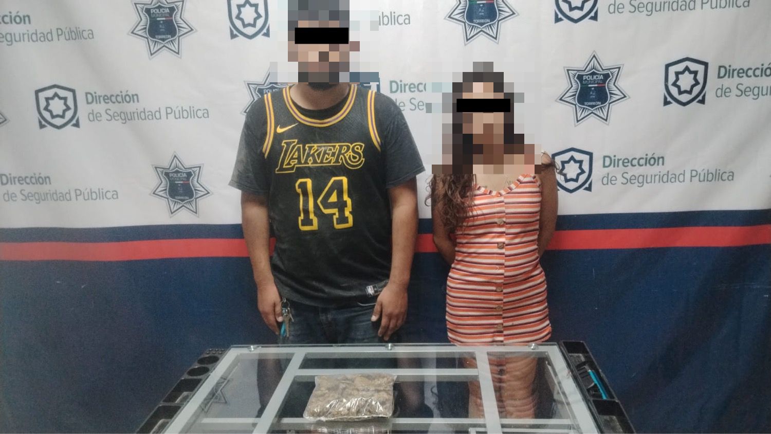 Torreón, Coahuila. – Durante las primeras horas de este lunes elementos de la Dirección de Seguridad Pública Municipal, realizaron la detención de una mujer y un hombre en posesión de una bolsa con probable marihuana. Los hechos ocurrieron sobre la avenida Lorenzo Ávalos, a la altura del número 100, en la colonia Santiago Ramírez.