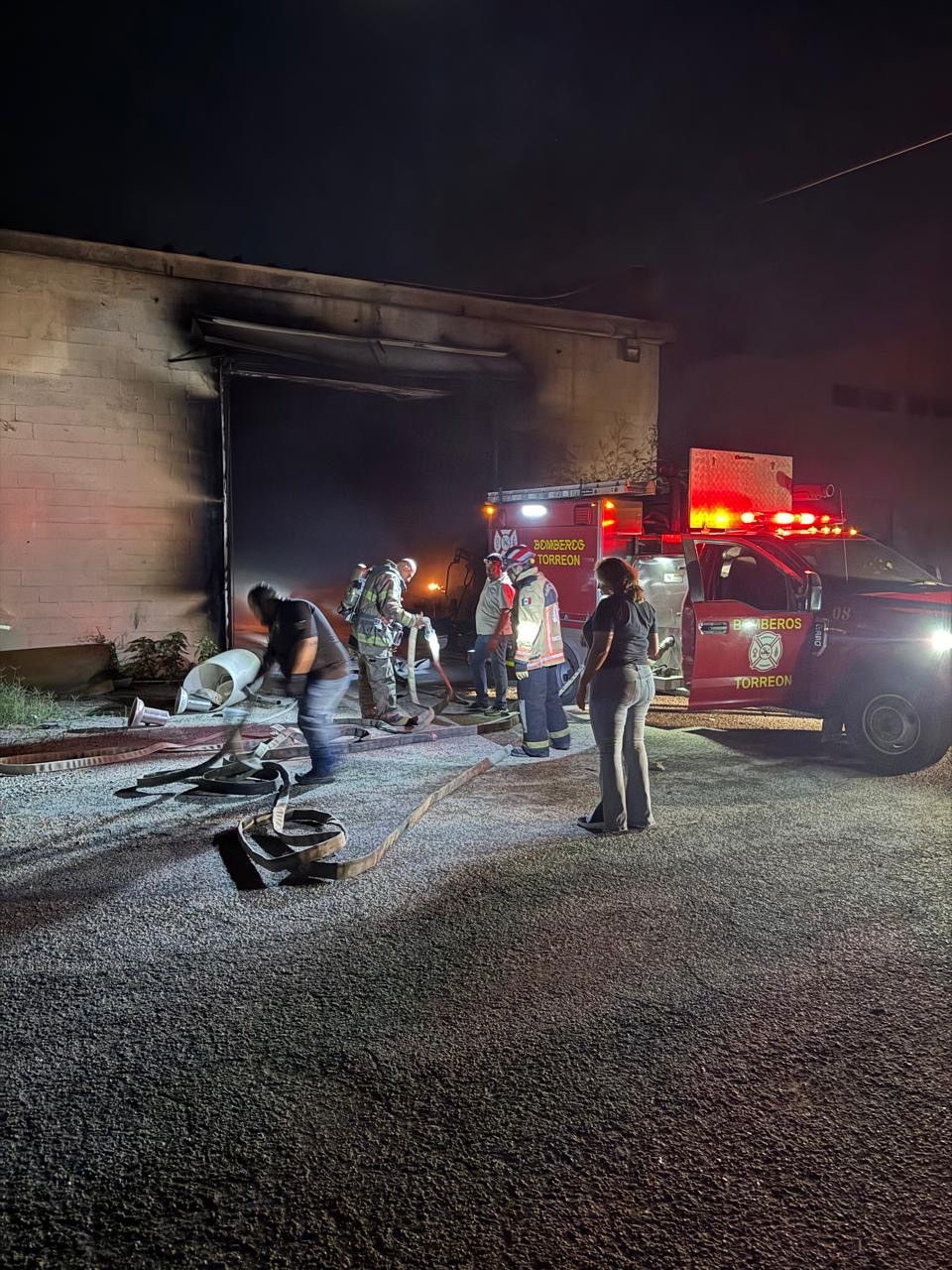 Debido a la magnitud del fuego, se solicitó apoyo a Bomberos de Torreón, quienes acudieron con dos máquinas de ataque rápido y una cisterna, así como a Protección Civil de Matamoros, que aportó otra unidad cisterna.