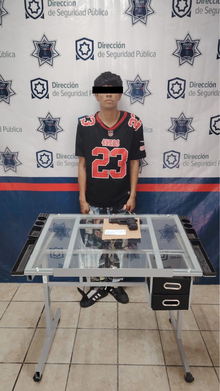 Torreón, Coahuila. – Elementos de la Dirección de Seguridad Pública Municipal realizaron la detención de Sebastián “N” de 19 años, luego de que adoptara una conducta agresiva y lanzara amenazas durante un recorrido de vigilancia en la colonia División del Norte.