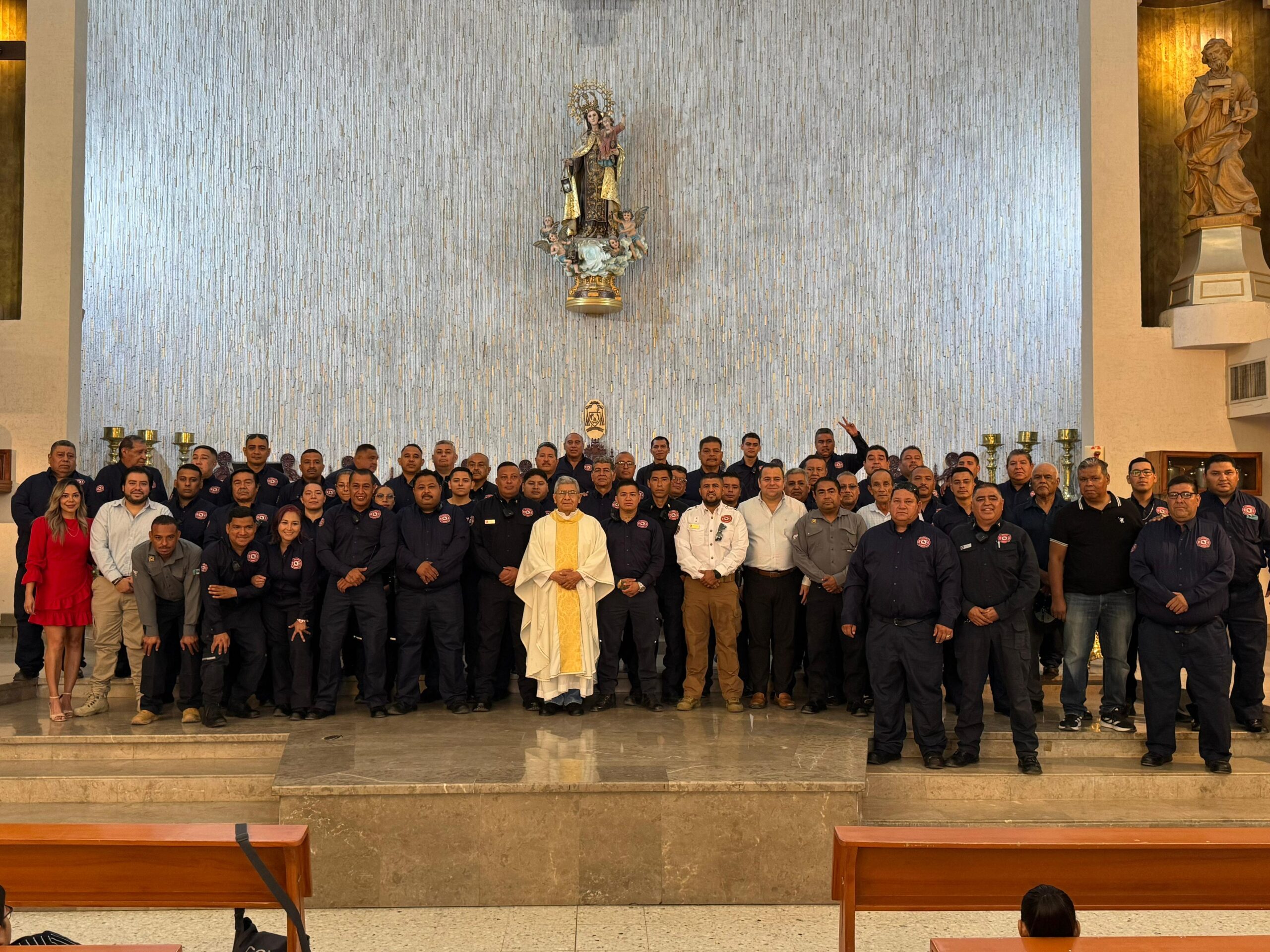 Elementos del Heroico Cuerpo de Bomberos de Torreón, acompañados de su familia, conmemoraron su día con una misa, donde se pidió por su bienestar durante sus jornadas de trabajo.