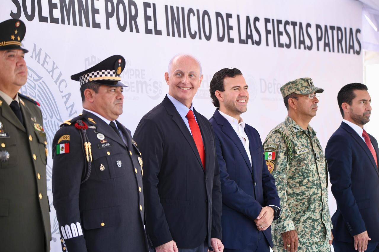 Durante la ceremonia de Izamiento a la Bandera y Lectura del Bando Solemne por el Inicio de las Fiestas Patrias, estuvo Gabriel Elizondo Pérez, coordinador general de Mejora Coahuila, en representación del gobernador Manolo Jiménez Salinas, además, el alcalde estuvo acompañado de autoridades municipales, estatales y militares.