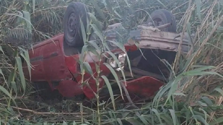 El auto que tripulaba, luego de volcar, quedó sobre su toldo entre unos carrizales.