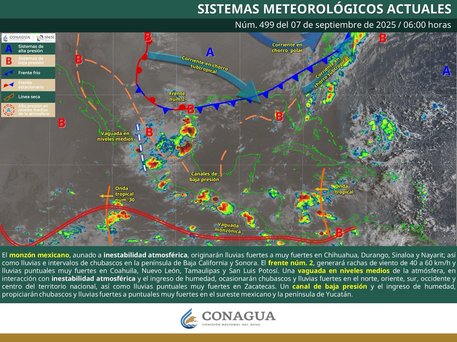 • Estas precipitaciones podrían reducir la visibilidad en tramos carreteros, incrementar los niveles de ríos y arroyos, y generar encharcamientos, deslaves e inundaciones.