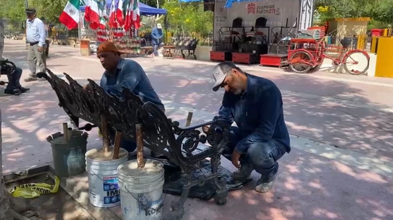 Asimismo, informó que para la noche del Grito de Independencia, el 15 de septiembre, cuadrillas de la dependencia trabajan en la Plaza Mayor, con pintura en el exterior de la Presidencia Municipal, en bancas, fuentes, tolvas y botes de basura, para recibir a los miles de asistentes que se esperan, quienes disfrutarán del concierto de Intocable.