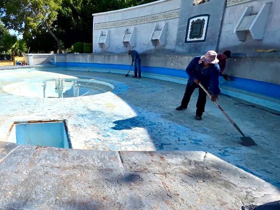 “La pintura de la fuente, al ser un material especial clorado, requiere que los trabajos se realicen por la noche para evitar que el calor del día genere burbujas, asegurando un acabado duradero y de alta calidad”, explicó el funcionario.