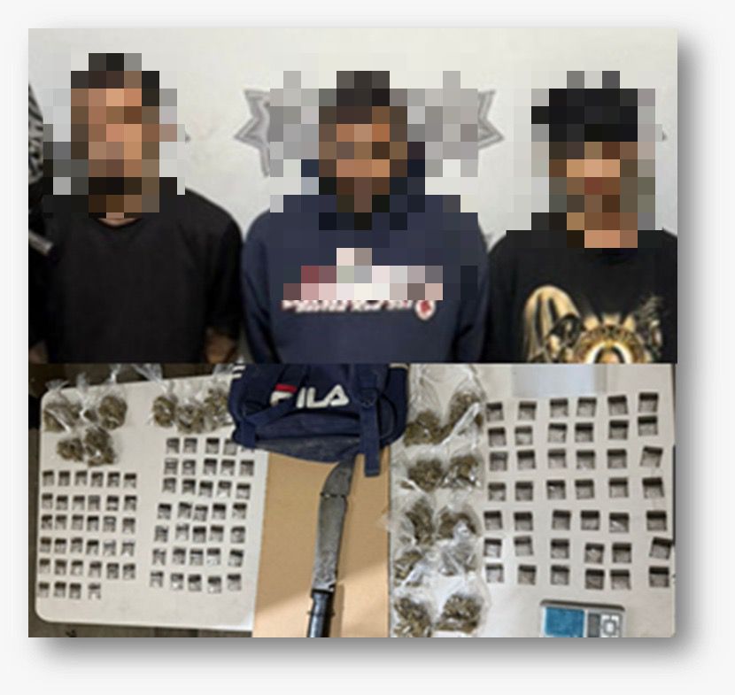 Los tres sujetos fueron detenidos y puestos a disposición del Ministerio Público por el delito de posesión de narcóticos con fines de venta, así como por agresión a la autoridad.