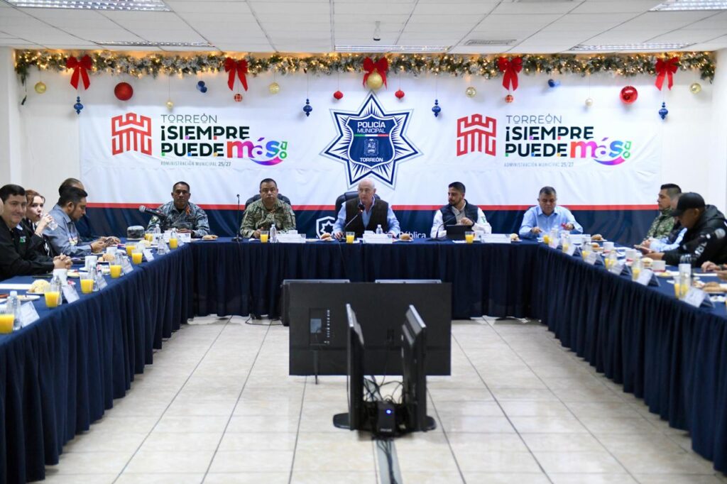 Rumbo al cierre de año, dijo, las diferentes corporaciones reforzarán las acciones para mantener el orden y la paz, y trabajarán de manera coordinada con el gobernador Manolo Jiménez Salinas para proteger a las familias torreonenses.
