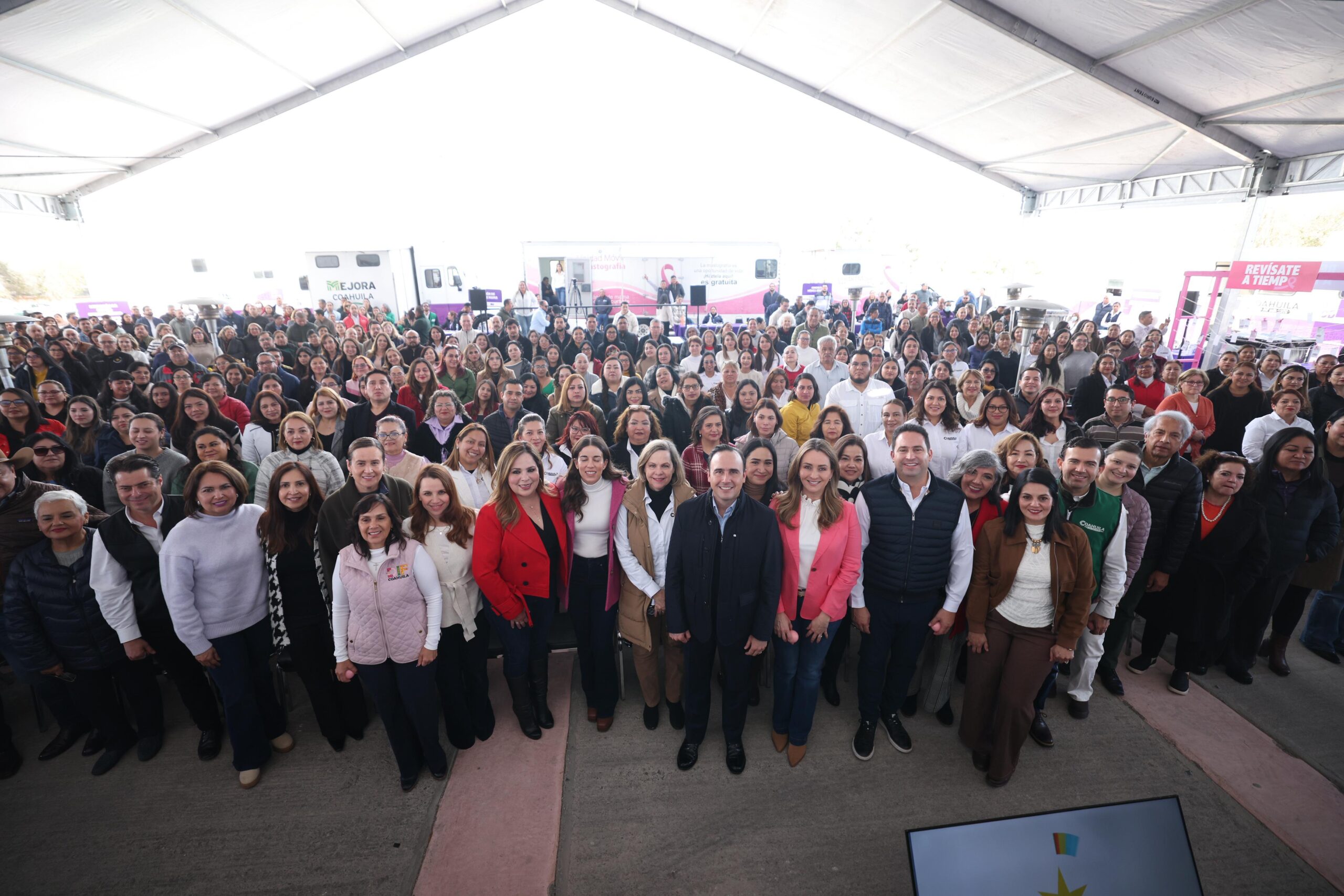 “En Coahuila seguimos fortaleciendo la salud de nuestras mujeres. Por ello, junto a mi esposa Paola y a nuestros equipos de Inspira y Salud, durante todo el 2026, en especial los días 19, vamos a estar llevando a cabo diferentes actividades del programa “Revísate a Tiempo”, para atender y concientizar con mayor intensidad la prevención de cáncer de mama y cervicouterino. Hoy 19 de enero arrancamos las brigadas “Estar bien” con servicios de mastografía, papanicolaou y atención médica para la detección oportuna del cáncer. Estas brigadas se extenderán a los 38 municipios del estado”, destacó el gobernador.