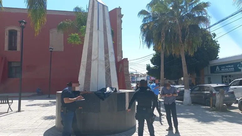 Un hombre de 64 años que caminaba por la intersección de la avenida Morelos y la calle Juárez, observó una bolsa negra en un monumento de la Plaza Fundadores.