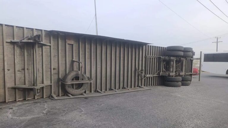 El chofer de un tráiler resultó sin lesión alguna, luego que terminara volcado en el Parque Industrial de Ferropuerto, en Torreón, Coahuila.
