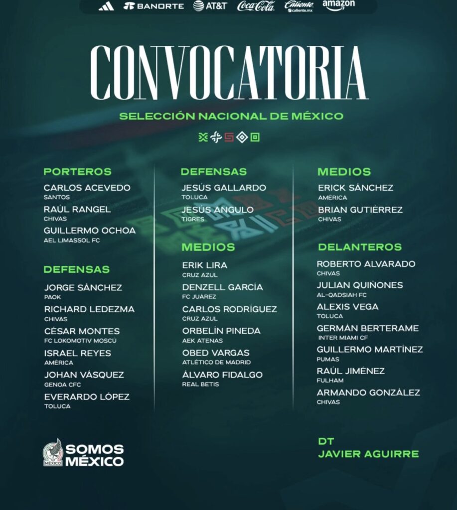 El director técnico Javier Aguirre convocó a 26 jugadores, combinando experiencia internacional y talento joven del fútbol mexicano y europeo.