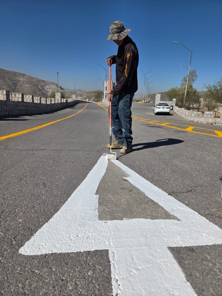 Entre los trabajos realizados, se reforzó con pintura la delimitación de la cordonería, carriles, cajones de estacionamiento, señalamiento de velocidad, zona peatonal y cajones azules.