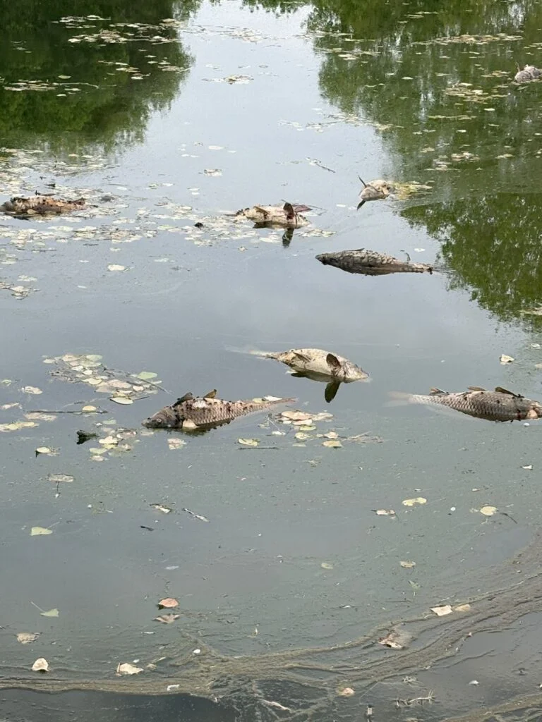 Debido a las aguas contaminadas, decenas de peces han muerto, lo que ha provocado una pestilencia mayor.